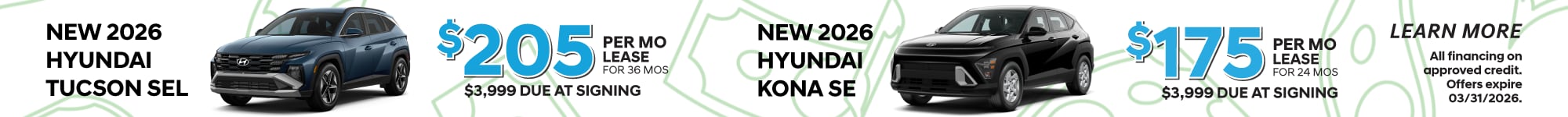 Our expansive new Hyundai inventory has something for every driver. New Hyundai models include: